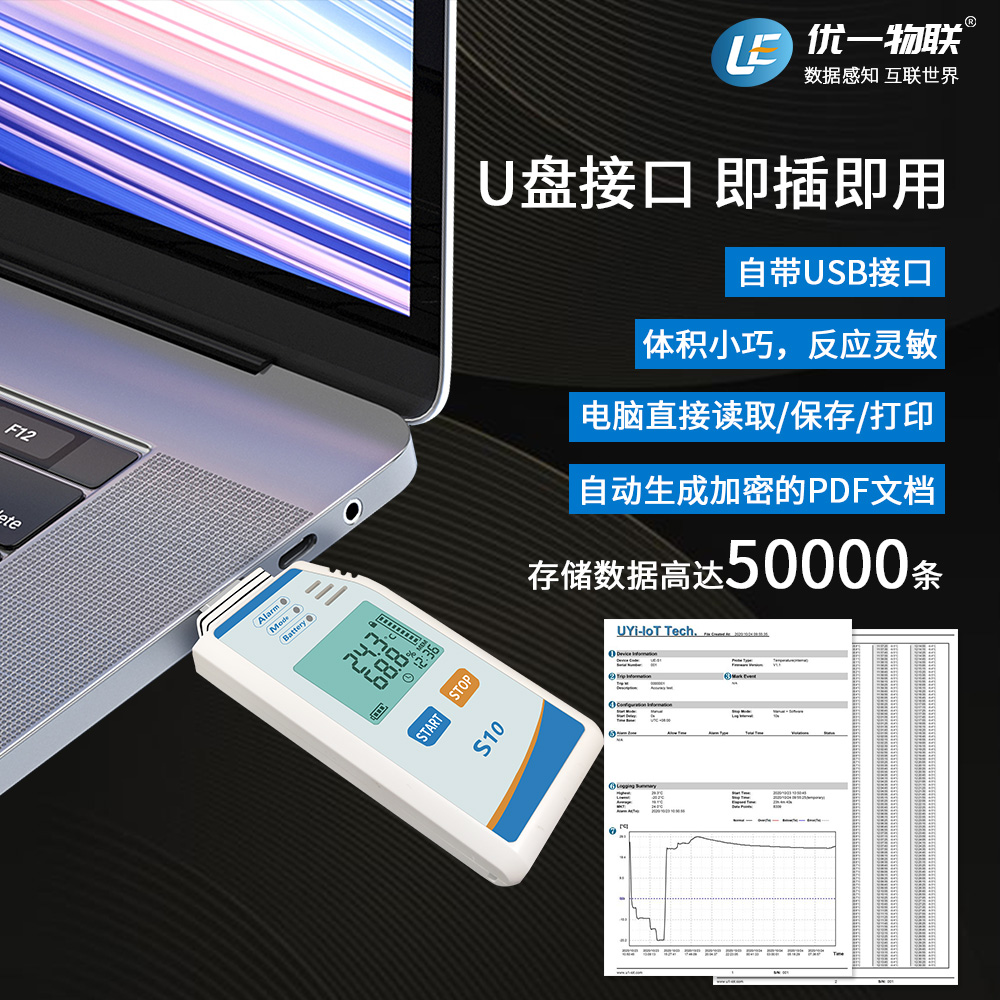 U1-S10是一款應用于生物醫藥箱,集裝箱,冷藏車,倉庫,驗證等場景的PDF溫濕度記錄儀,大屏LCD顯示,高精度,大容量,生成報告表速度快,操作便捷,常用于食品藥品或其它溫度敏感貨物的冷鏈運輸,倉庫等環境監測,驗證設備。