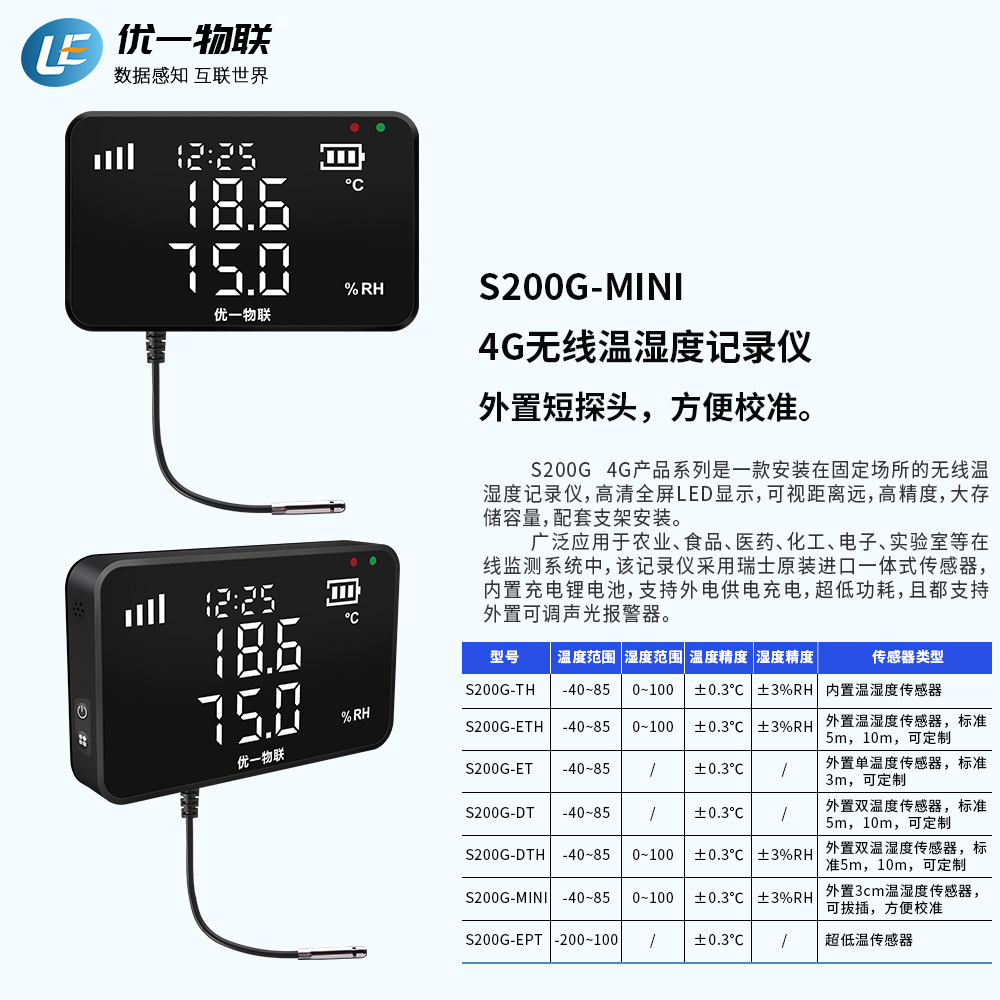 S200G-MINI 4G無線短探頭溫濕度記錄儀